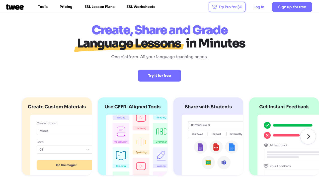 Dialogue generation, gap-fill exercises, vocabulary matching activities, discussion questions -- these are the repetitive building blocks of ESL lessons. AI generates them faster than you can type the topic into a search engine. Twee and MagicSchool are particularly strong here.